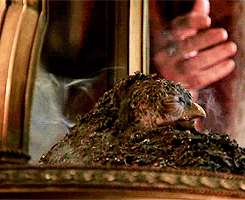 Aside from copulation, a phoenix also undergoes regeneration. While not exactly considered reproduction in Muggle terms as it simply reproduces itself, it is a unique process that is an integral part of its life cycle. Once a phoenix has reached old age, it bursts into flames, consuming its body and born again as a new chick in its ashes. This phenomenon is called the Burning day, and this cycle continues throughout a phoenix's life which possibly lasts forever.
